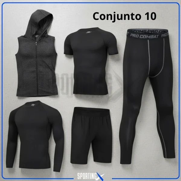 A diferencia de kits comunes que se humedecen y huelen, este seca instantáneamente, tiene compresión graduada que reduce fatiga muscular y modelado que no sube ni rueda durante movimientos explosivos.